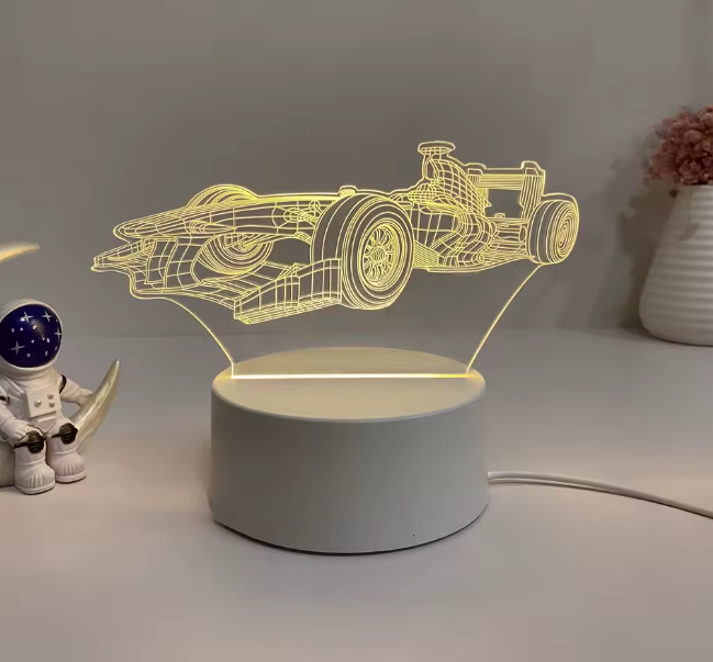 3D illusion LED night light featuring a Formula 1 race car design